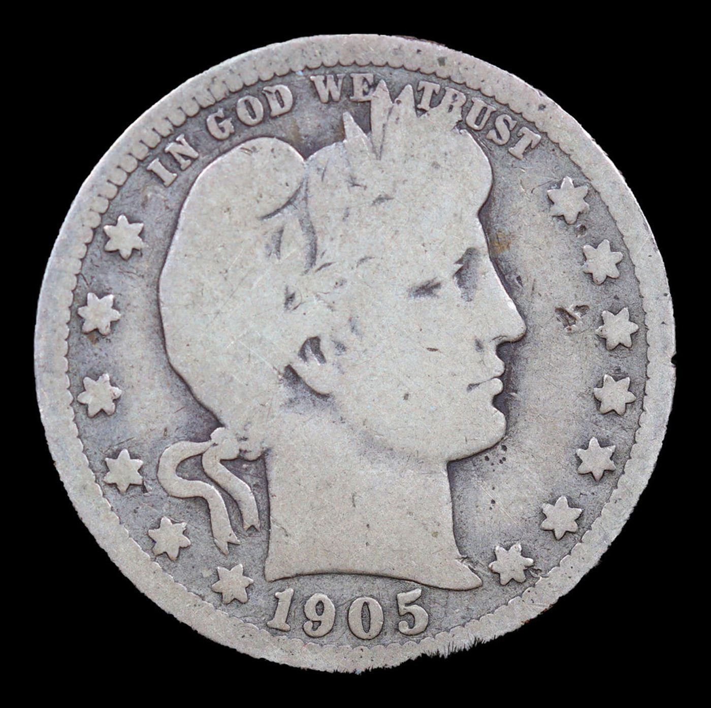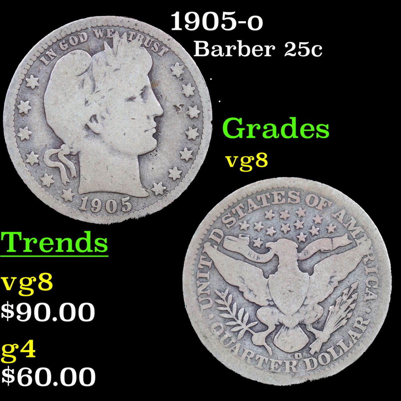 1905-o Barber Quarter 25c Grades vg, very good.