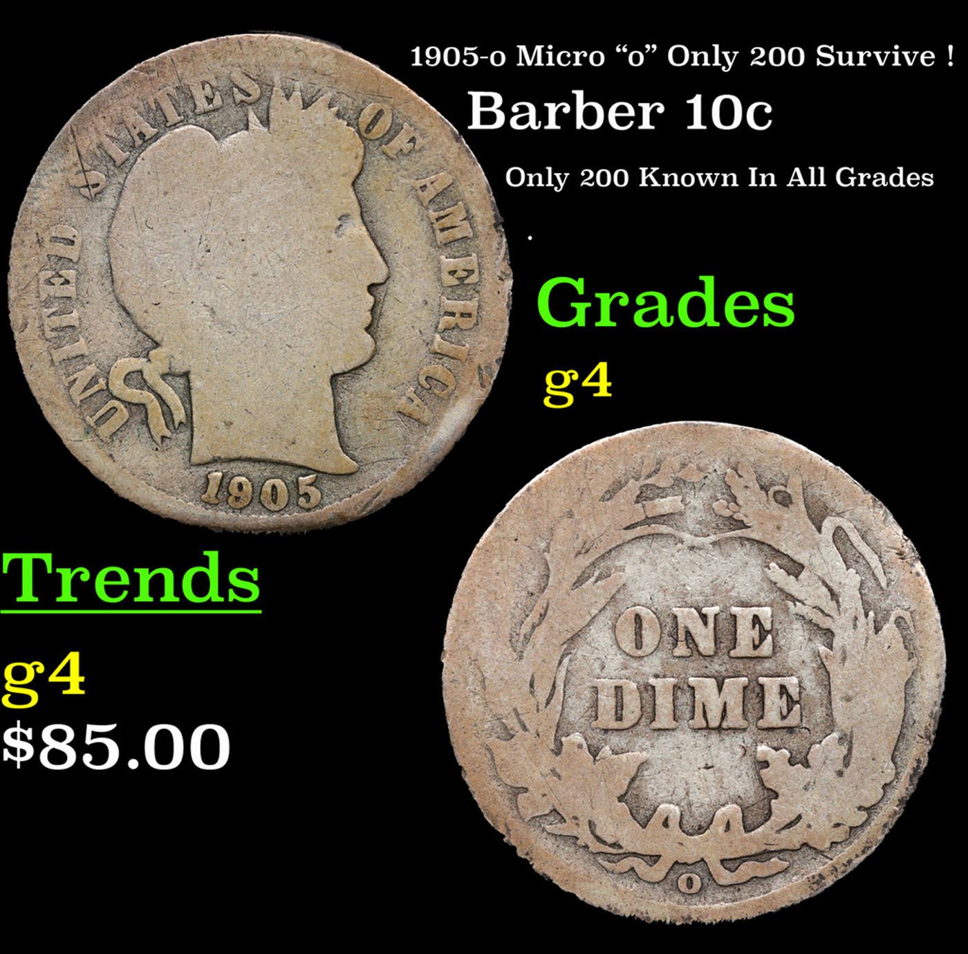 1905-o Micro "o" Only 200 Survive ! Barber Dime 10c Grades g, good. Scarce in any grade. Very RARE!