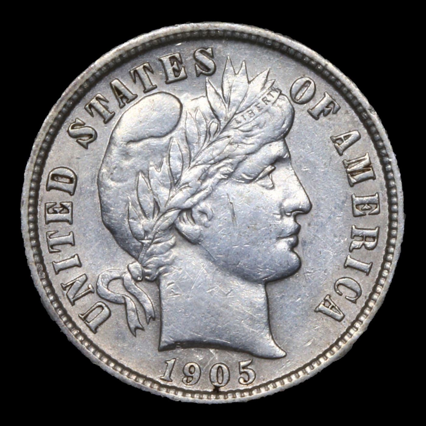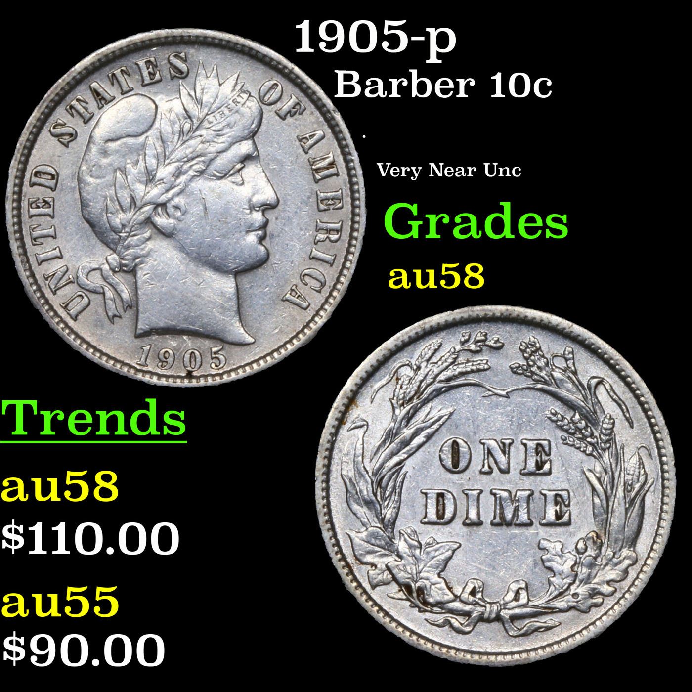 1905-p Barber Dime 10c Grades Choice AU/BU Slider.