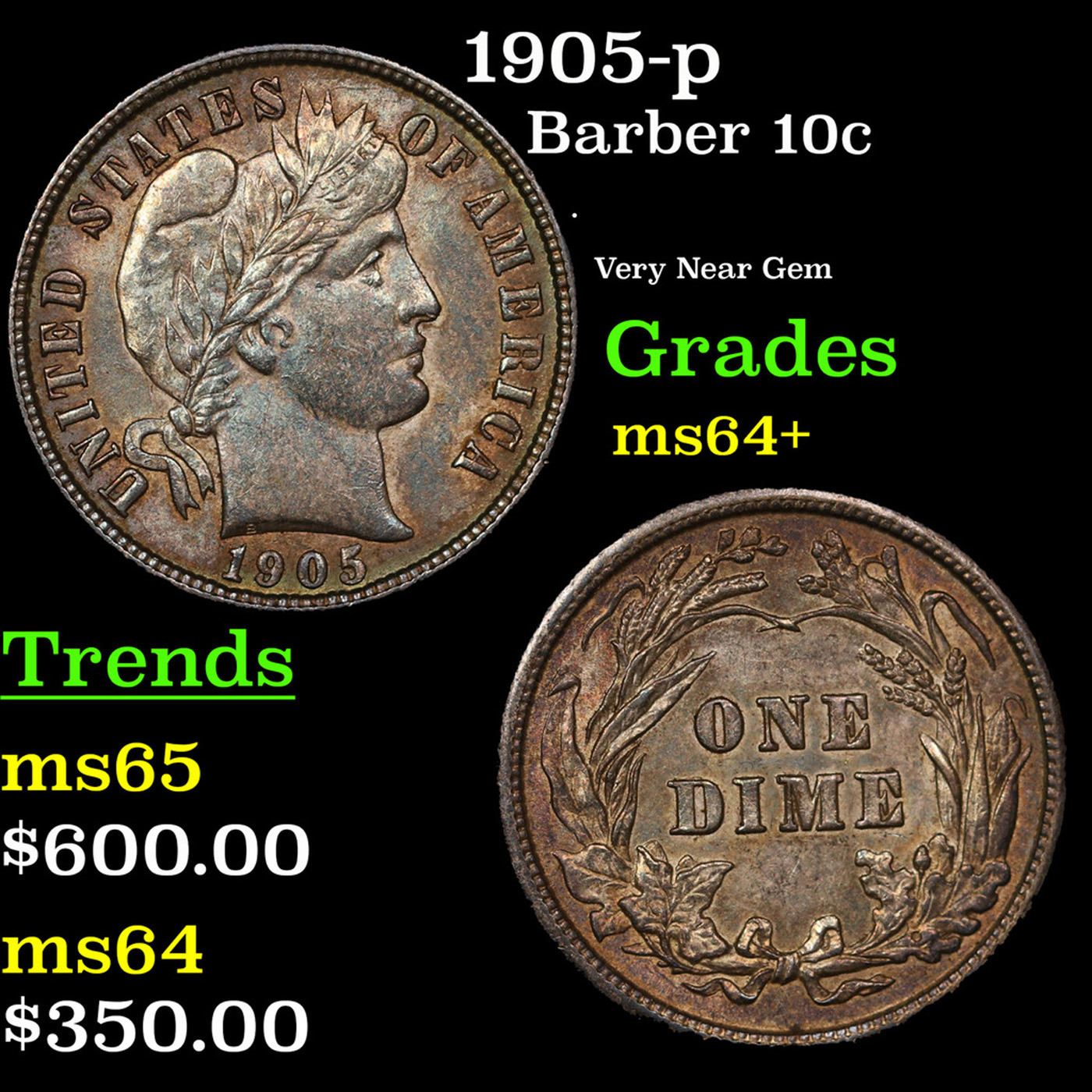 1905-p Barber Dime 10c Grades Choice+ Unc.