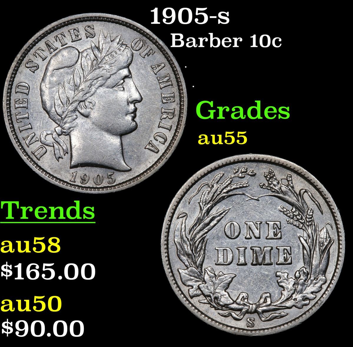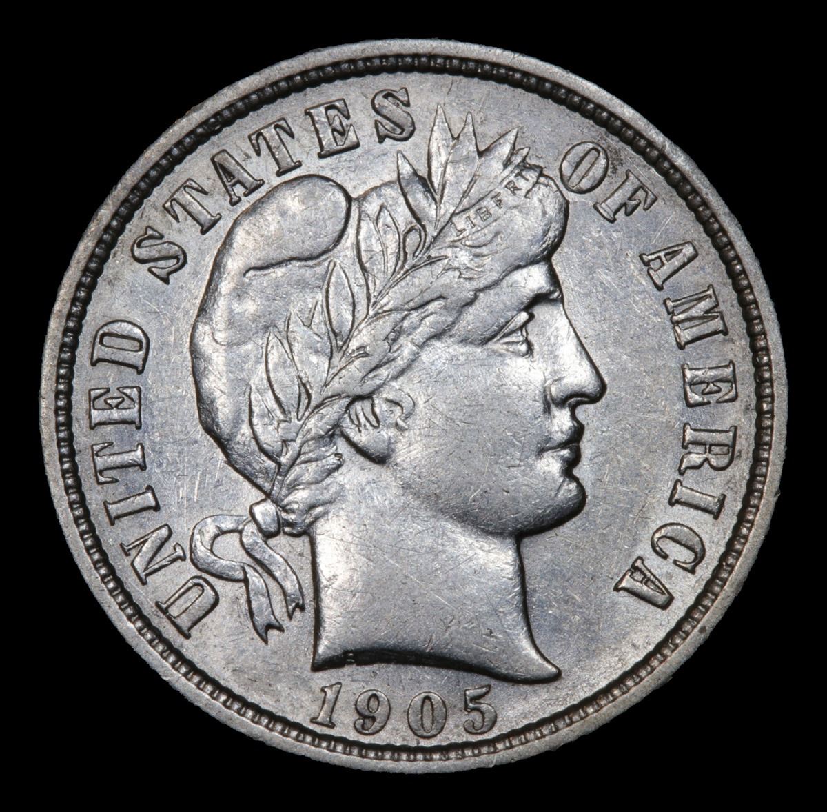 1905-s . . Barber Dime 10c Grades Choice AU. A better date Barber Dime.