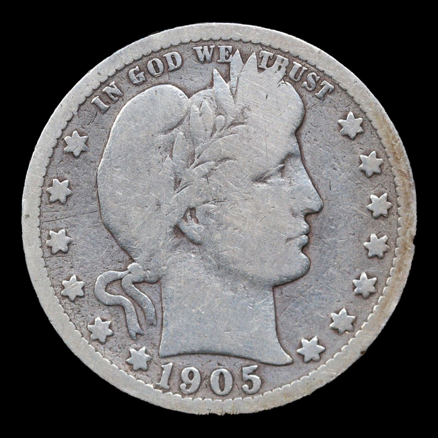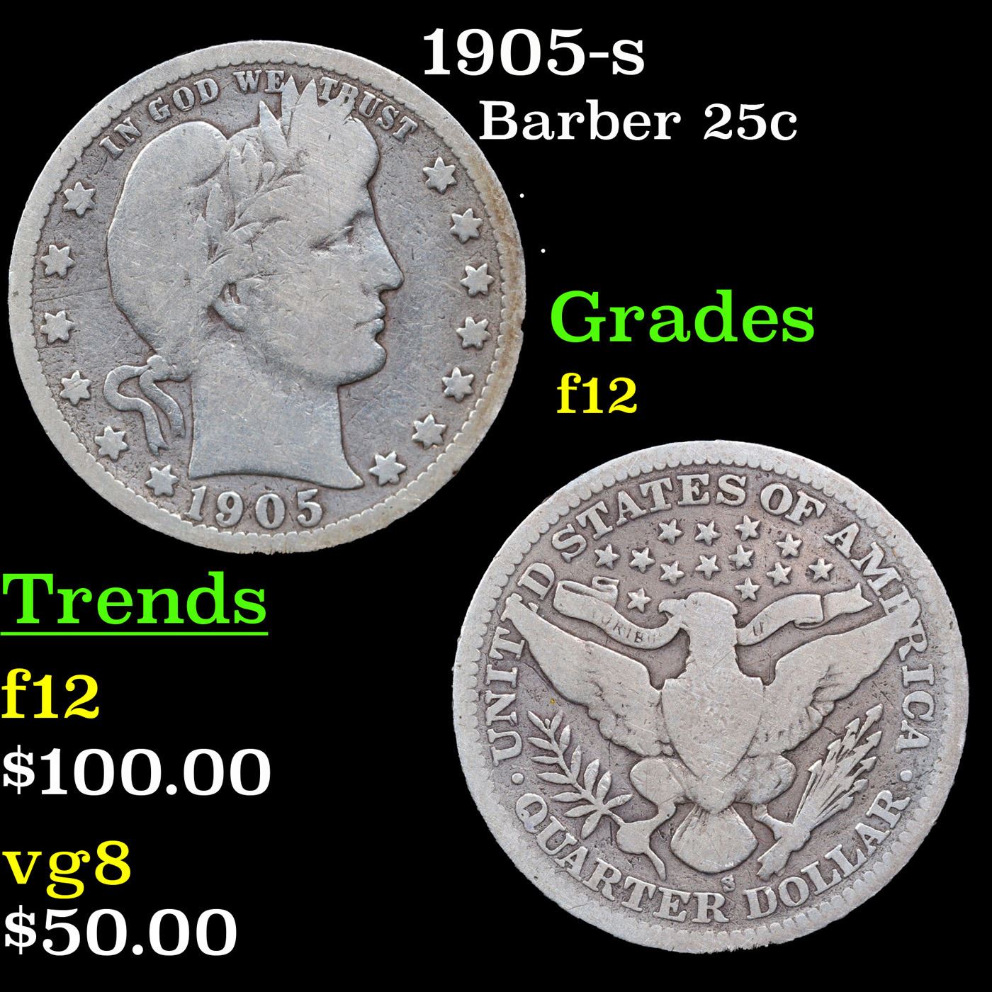 1905-s Barber Quarter 25c Grades f, fine.