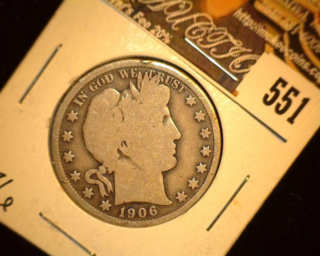 1906 0 U.S. Barber Silver Half Dollar, Good+.