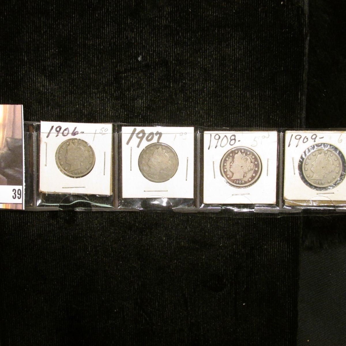 1906, 07, 08, & 09 U.S. Liberty "V" Nickels, Good to Fine.