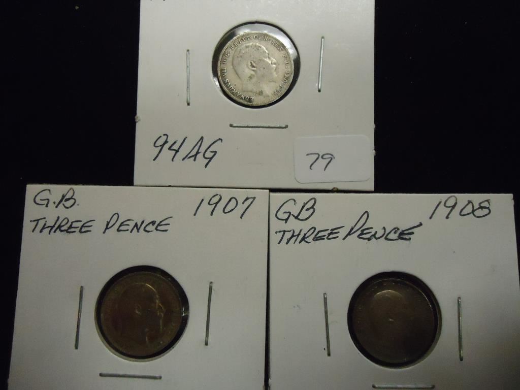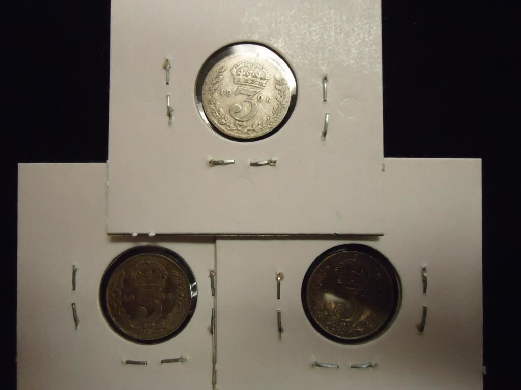 1906,07 & 1908 GREAT BRITAIN SILVER 3 PENCE