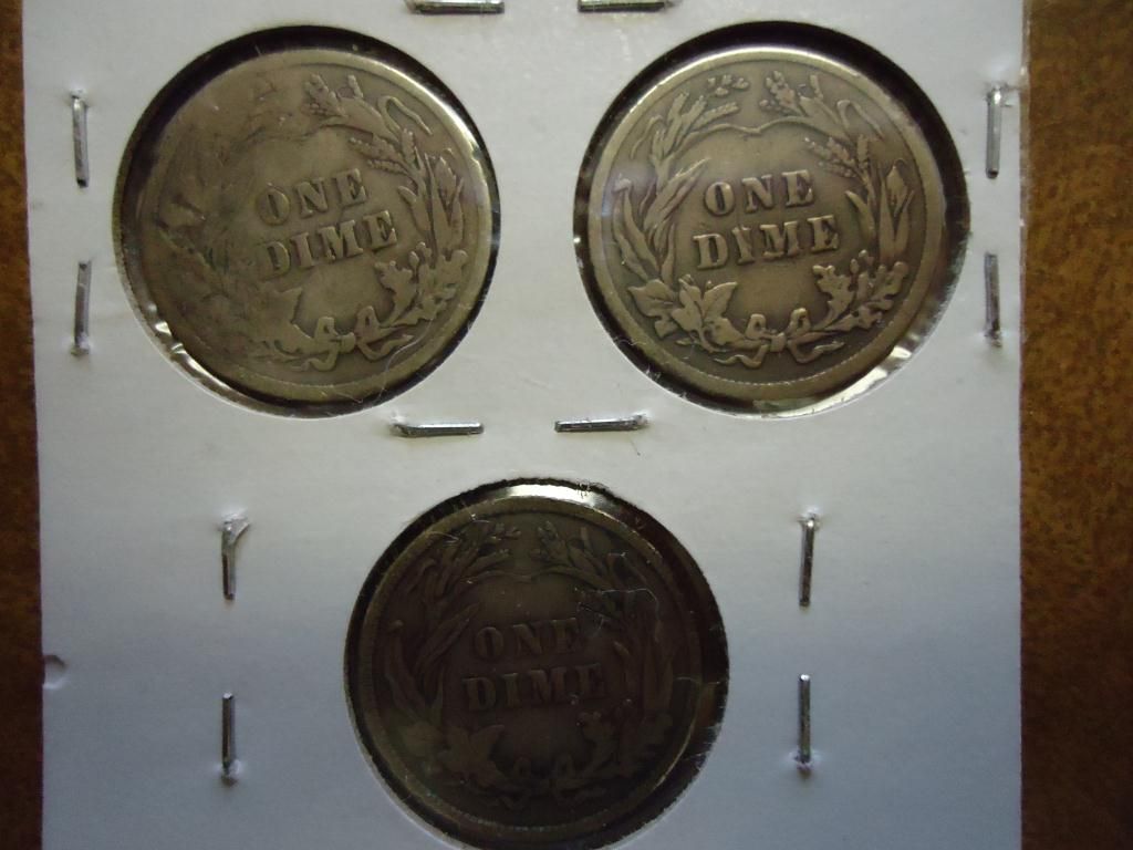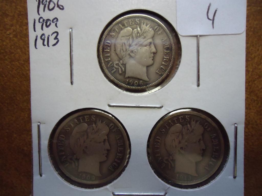 1906,09 & 13 BARBER DIMES ALL (VERY GOOD+)