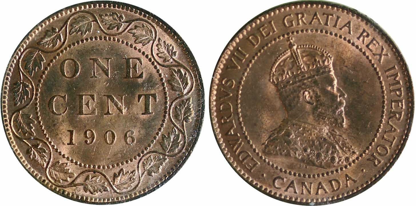 1906 1¢ ICCS Gem Mint State-65 Red, A pleasing example with nice colour and clean surfaces. A tough date to find in Gem condition. Ex. Landon example.
