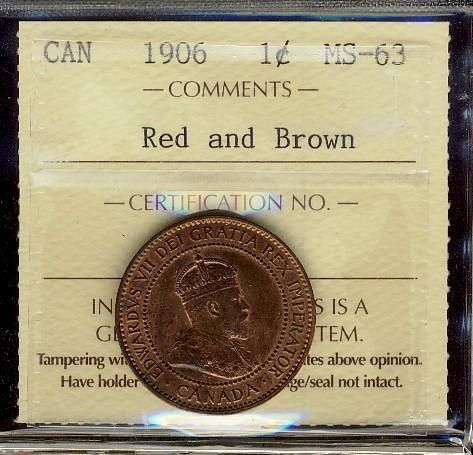 1906 1¢ ICCS MS63RB.
