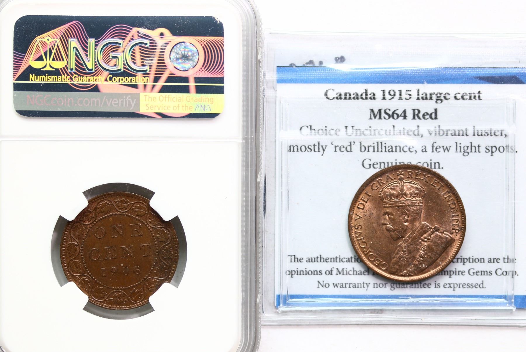 This is an Internet, Live Internet, email, phone and mail auction sale conducted. Information provided by The Canadian Numismatic Company on our web site and in this catalog is strictly AS IS and/or strictly an opinion. No warranty given. Bids are per lot. No lots will be broken. Auction sales are not approval sales. All lots shall be sold to the highest bidder as determined by the auctioneer. If any dispute arises during the sale, the auctioneer has the right to reopen the lot and put it up for sale again. The auctioneer’s decision will be final. In the case of identical (tied) bids during our Live Auctions, the earliest received bid shall take priority. In the case of a tie bid during our Sales, between a mail/fax bid and an Internet bid, the Internet bid will take precedence and obtain the lot. PLEASE CONTACT US IF YOU REQUIRE FURTHER EXPLANATION.