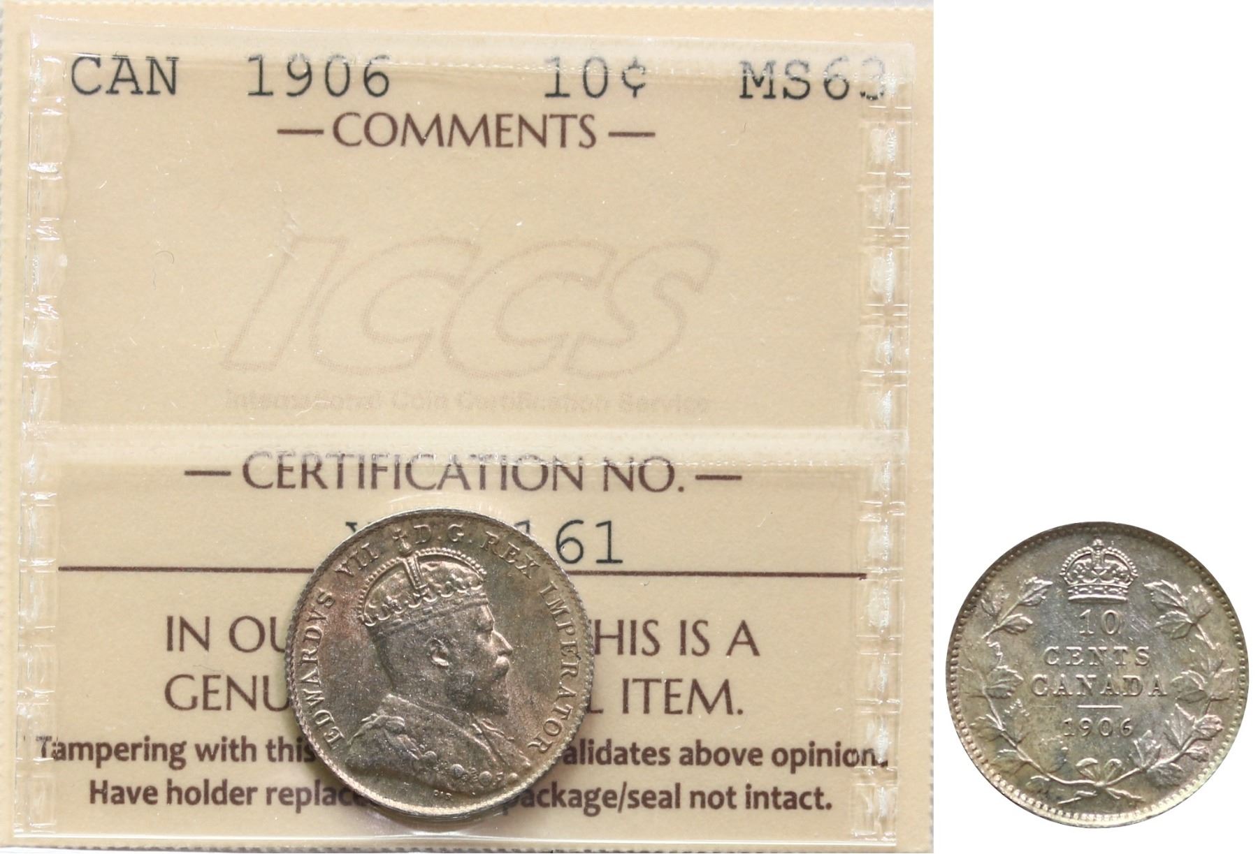 1906 10¢ ICCS Choice Mint State-63 Attractive gold and russet tones over full underlying lustre