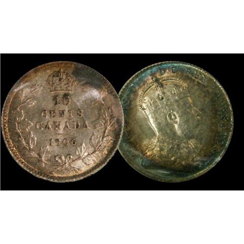1906 10¢ ICCS MS65PQ. Light to medium emerald and blue shades over full underlying lustre. Great eye appeal! Very rare in this grade.