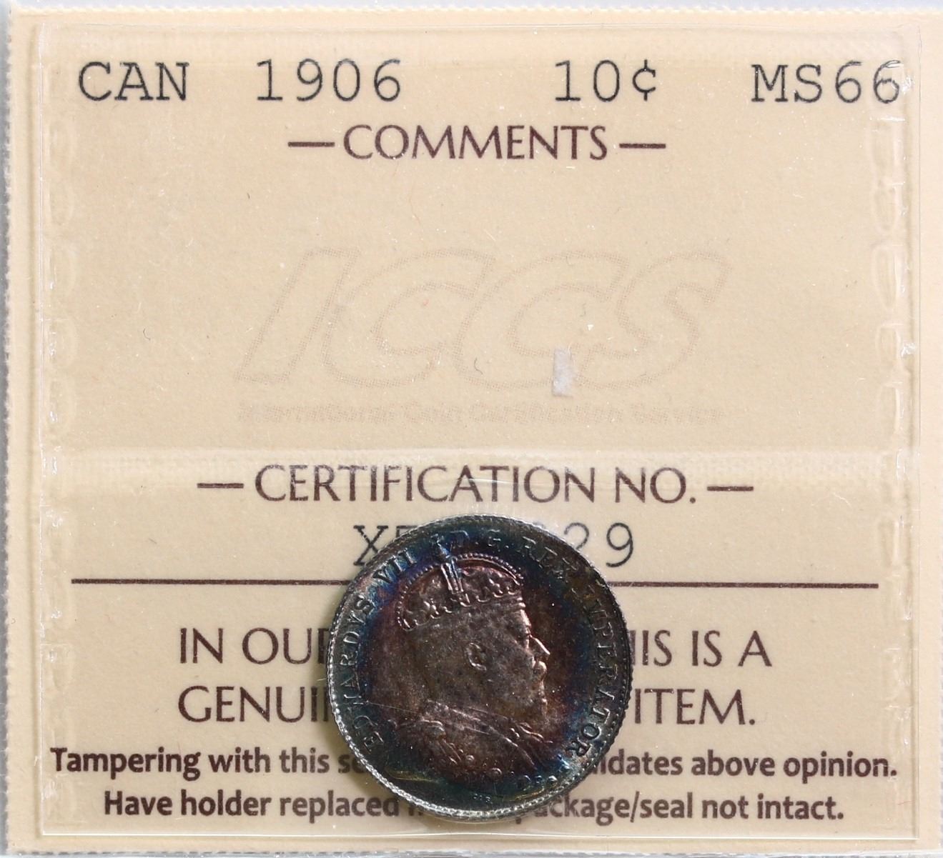 1906 10¢ ICCS Superb Gem Mint State-66. Superb Gem example displaying magnificent obverse circular rainbow tints.