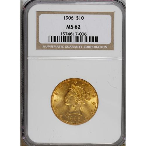 1906 $10 MS62 NGC. NGC Census: (666/190). PCGS Pop