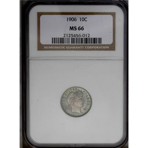 1906 10C MS66 NGC. Ocean-blue dominates the obverse, w 1906[10C] MS66 NGC.