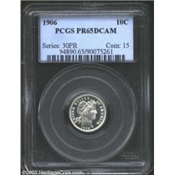 1906 10C PR65 Deep Cameo PCGS. A splendid, deeply mirrored proof whose devices are nicely frosted, w