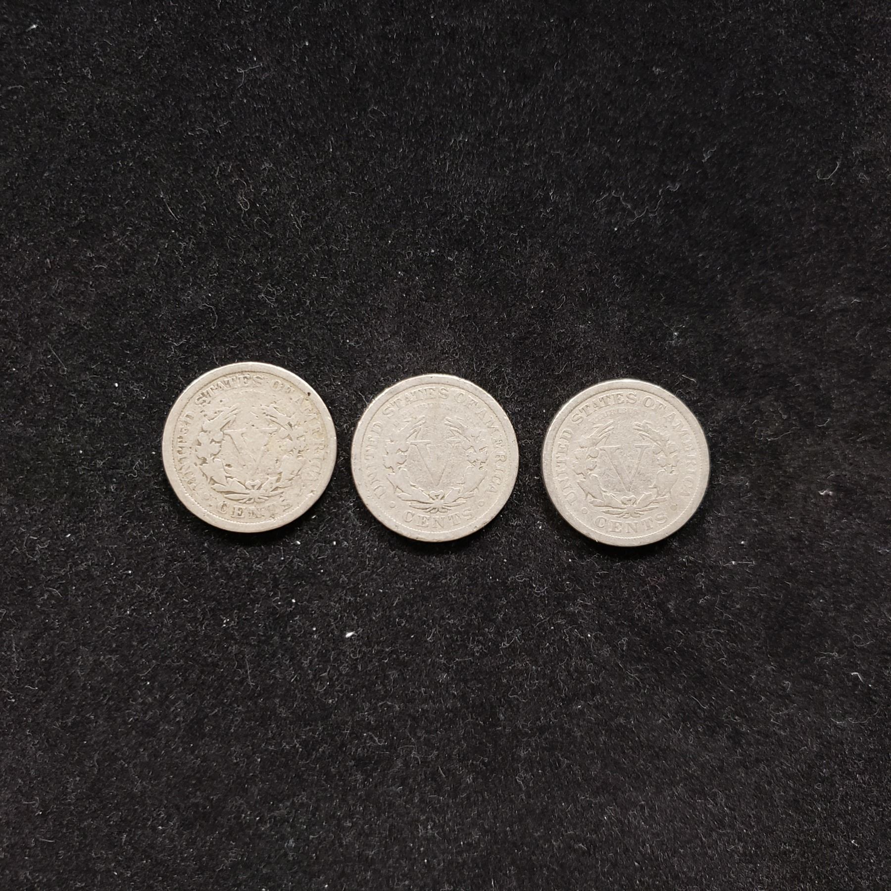 1906,1907,1908 Liberty V Nickels Grade: Mixed
