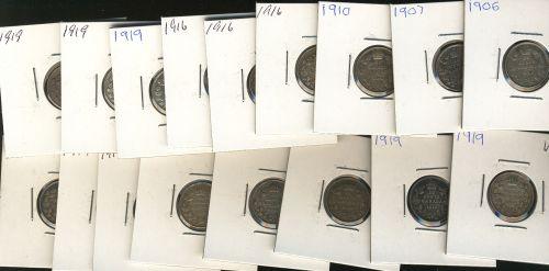1906, 1907, 1910, 1916 (3), 1919 (11). Grades vary from F-12 or better.