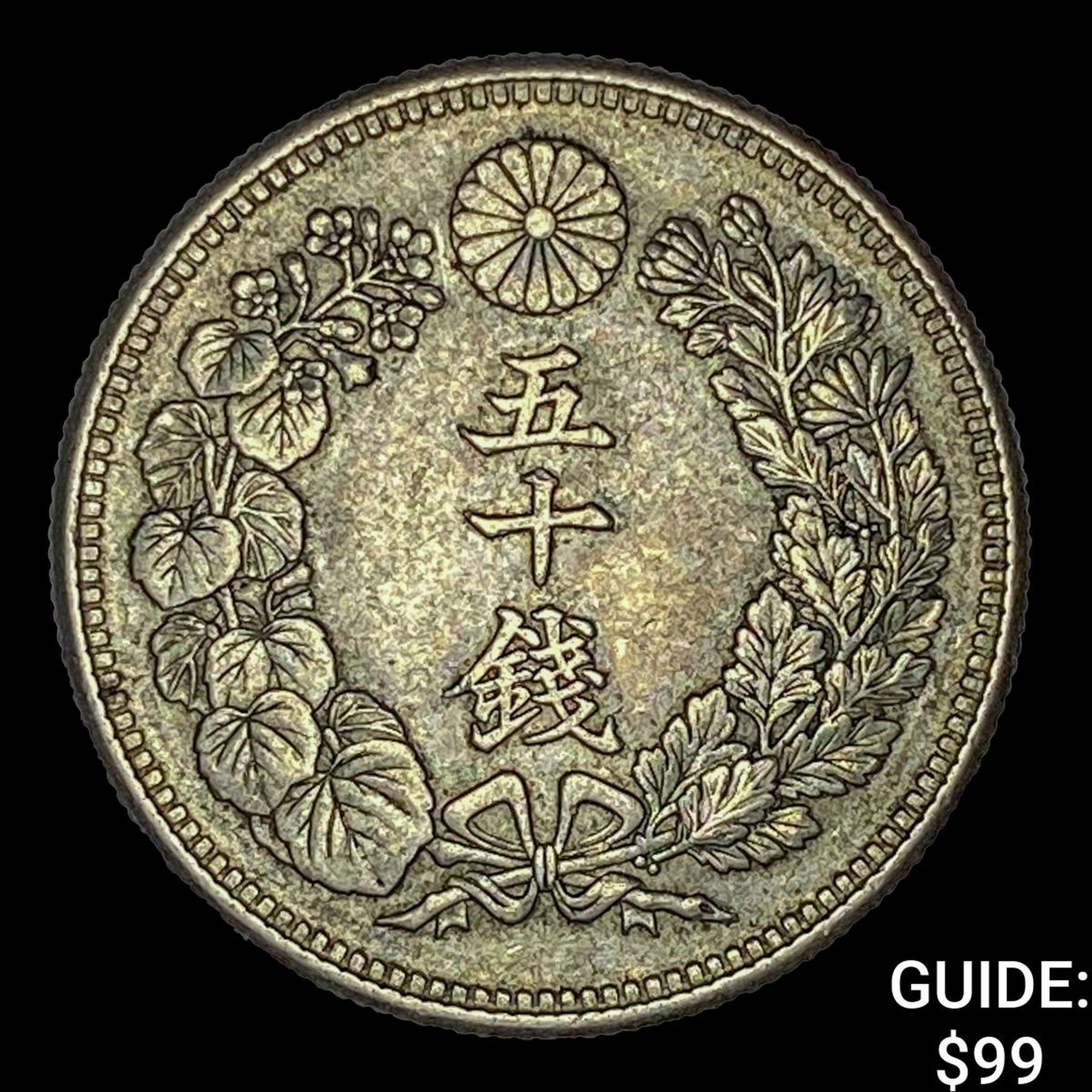 1906-1912 Japan Silver 50 Sen CLOSELY UNCIRCULATED