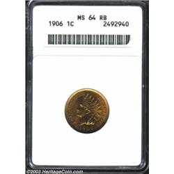 1906 1C MS64 Red and Brown ANACS. The lustrous, satiny surfaces are fiery orange-red on the obverse.