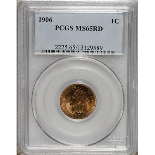 <B>1906 1C MS65 Red PCGS.</B></I> PCGS Population (155/15). NGC Census: (128/32). Mintage: 96,022,256. Numismedia Wsl. Price for NGC/PCGS coin in MS65: $420. (#2225)<BR><BR><b>Shipping:</b> Coins & Currency (<a target="_blank" href="http://www.heritageauctions.com/common/shipping.php">view shipping information</a>)