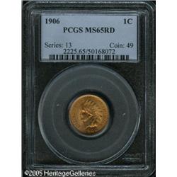 <B>1906 1C MS65 Red PCGS.</B></I> The surfaces are well preserved for the grade with few marks and a variegated orange-red and pinkish-red color. Several minute spots are present, but do not distract in the least. Lot:5254