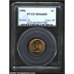 1906 1C MS66 Red PCGS. An exquisite Gem, the fully lustrous, orange-red surfaces shimmer with a richly frosted texture. Generally bold in strike, a few softly impressed areas, however, are seen toward the upper borders. Important notice: We expect to be auctioning lots at the rate of 200-250 per hour. On occasion eBay live bid software cannot keep up with the pace of the auctions where 4-5 lots per minute can hammer down, so we recommend that you place a realistic absentee bid now as insurance to avoid disappointment. Also please note that all Heritage/CAA lots purchased through eBay Live carry a 20% Buyer's Premium. Please make sure you read the Terms and Conditions.