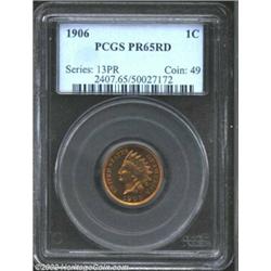 1906 1C PR65 Red PCGS. Mellow mint red, with a light sprinkling of carbon spots, this coin is an att