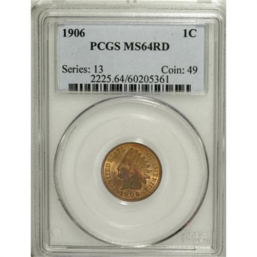<B>1906 1C MS64 Red PCGS.</B></I> PCGS Population (309/174). NGC Census: (171/160). Mintage: 96,022,256. Numismedia Wsl. Price for NGC/PCGS coin in MS64: $142. (#2225)<BR><BR><B>Coin Engraver:</B> James B. Longacre<BR><BR><b>Shipping:</b> Coins & Currency (<a target="_blank" href="http://www.heritageauctions.com/common/shipping.php">view shipping information</a>)
