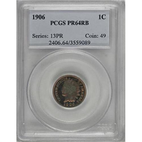 <B>1906 1C PR64 Red and Brown PCGS.</B></I> PCGS Population (101/24). NGC Census: (47/47). Mintage: 1,725. Numismedia Wsl. Price for NGC/PCGS coin in PR64: $260. (#2406)<BR><BR><B>Coin Engraver:</B> James B. Longacre<BR><BR><b>Shipping:</b> Coins & Currency (<a target="_blank" href="http://www.heritageauctions.com/common/shipping.php">view shipping information</a>)