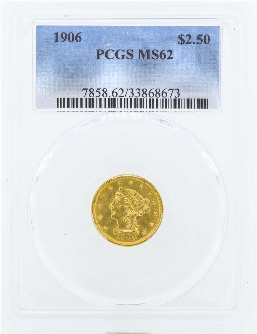 One 1906 $2 1/2 Liberty Head Quarter Eagle Gold Coin PCGS MS62. PCGS Graded.