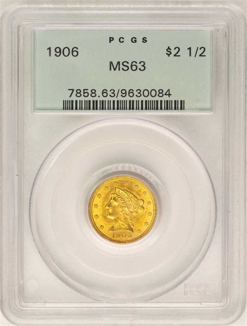 One 1906 $2 1/2 Liberty Head Quarter Eagle Gold Coin PCGS MS63 OGH. PCGS Graded.