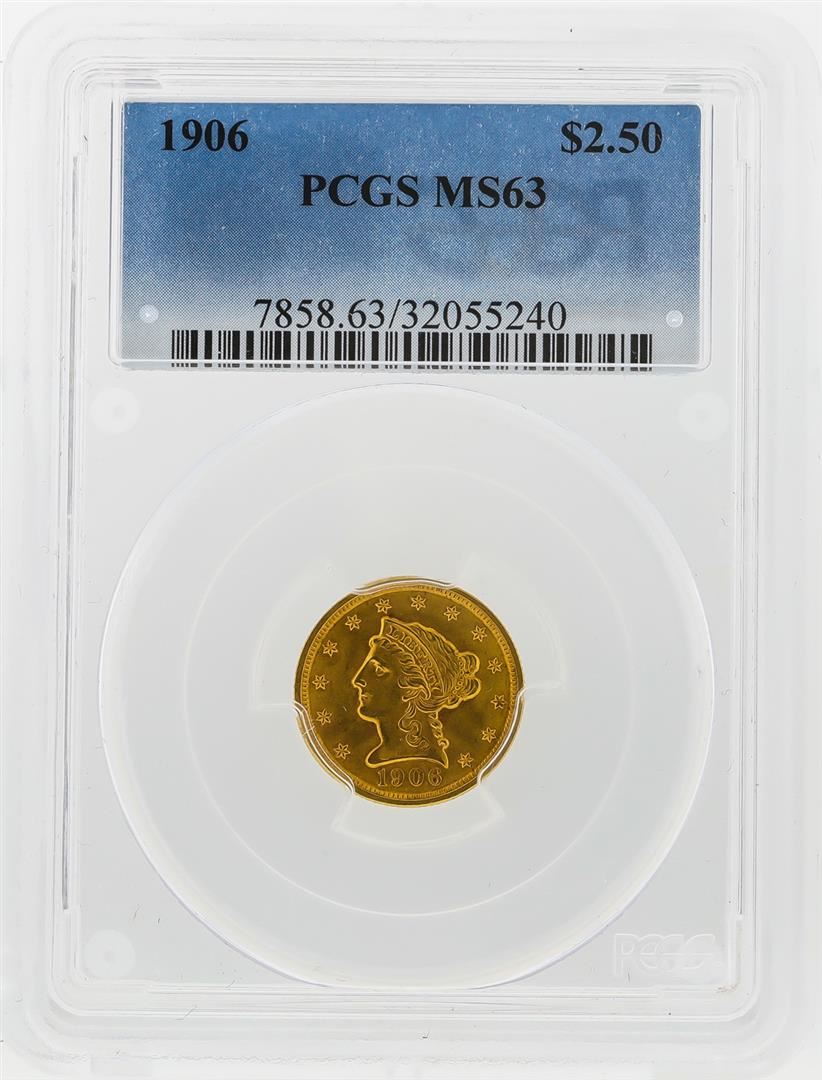 One 1906 $2 1/2 Liberty Head Quarter Eagle Gold Coin PCGS MS63. PCGS Graded.