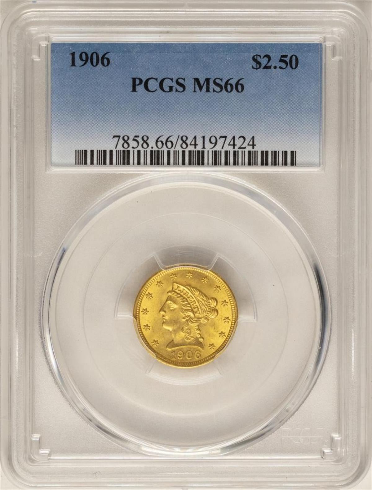 One 1906 $2 1/2 Liberty Head Quarter Eagle Gold Coin PCGS MS66. PCGS Certified.