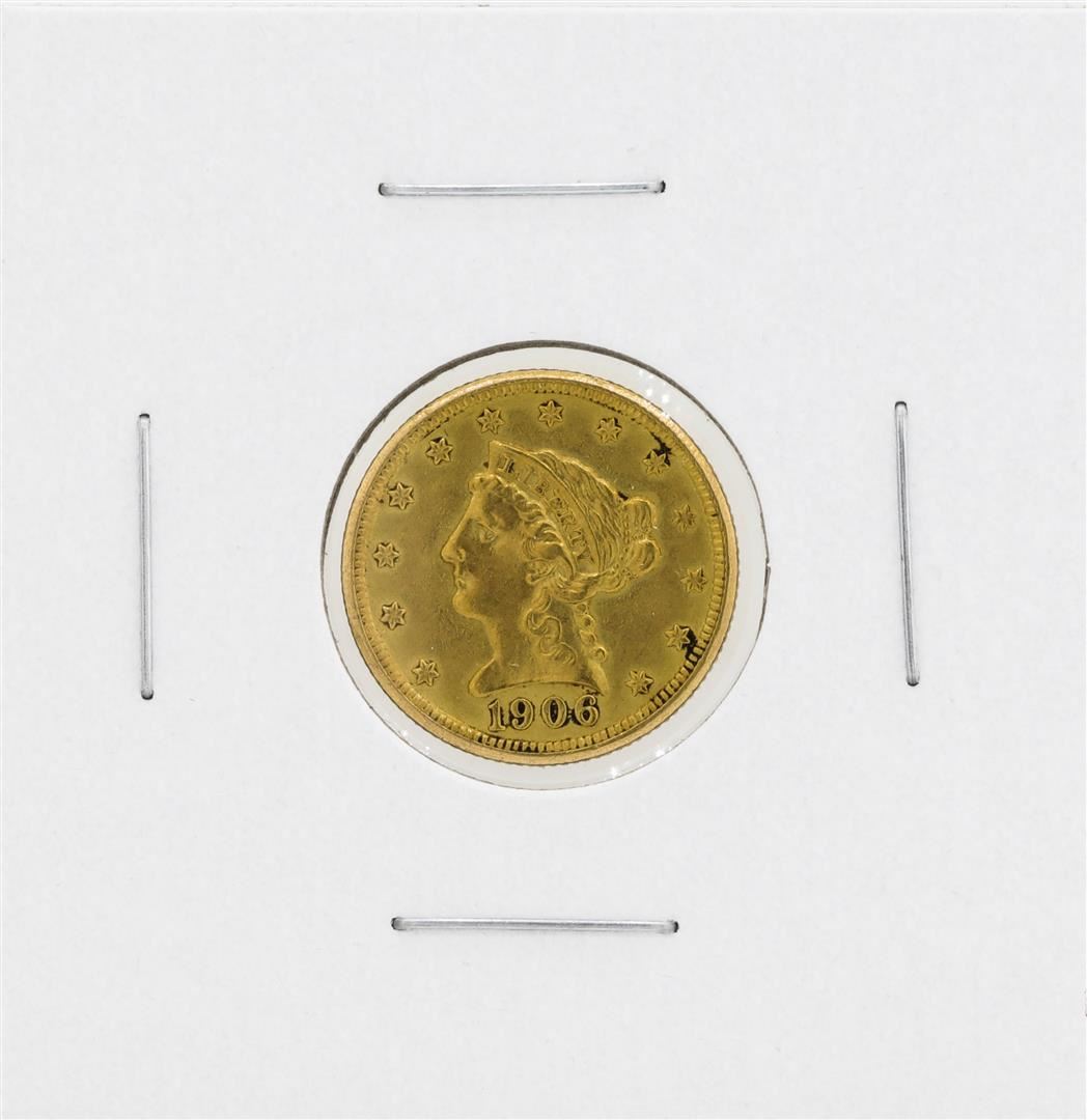 One 1906 $2 1/2 Liberty Head Quarter Eagle Gold Coin.