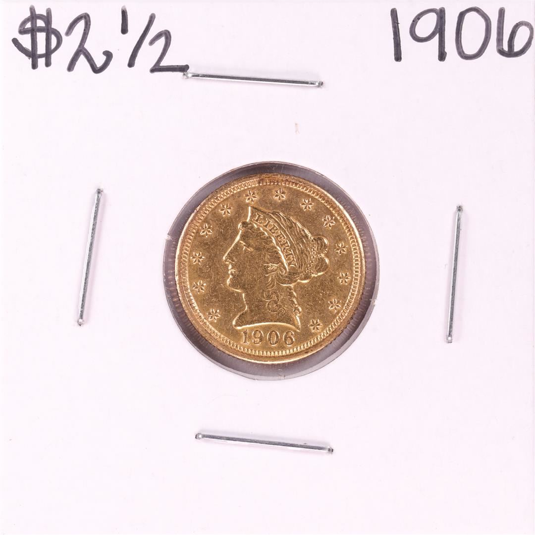 One 1906 $2 1/2 Liberty Head Quarter Eagle Gold Coin.