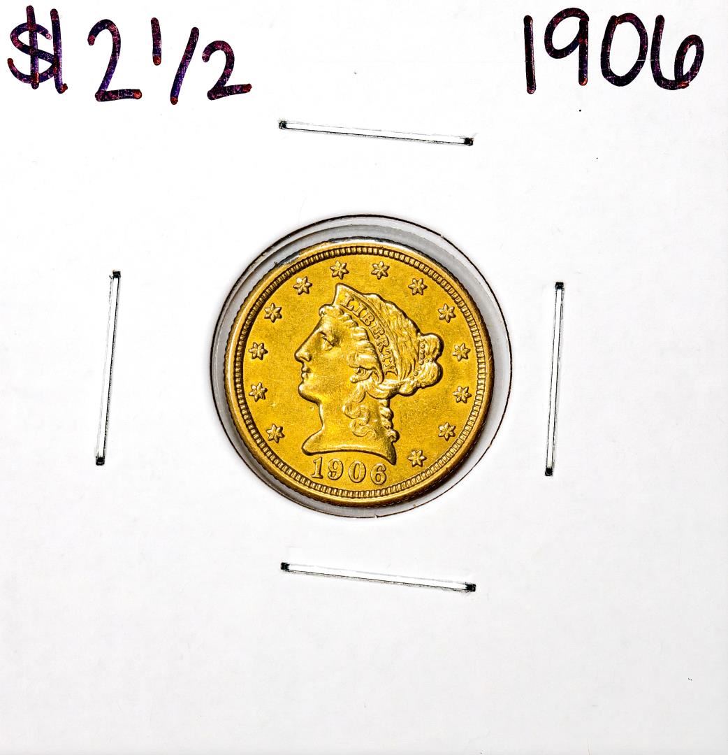 One 1906 $2 1/2 Liberty Head Quarter Eagle Gold Coin.