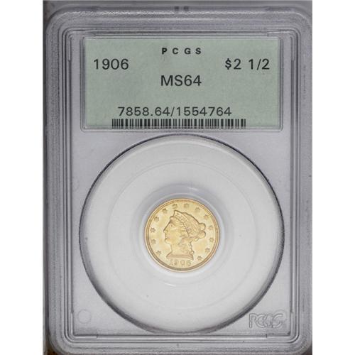 <B>1906<$2 1/2> MS64 PCGS.</B></I> An assertively struck older holder example that has the look of a higher grade despite a few whispery marks on the upper reverse field.