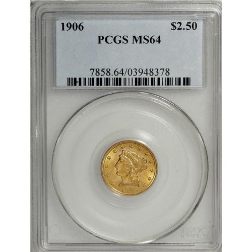 1906 $2 1/2 MS64 PCGS. Well-defined and clean with pot