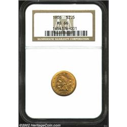 1906 $2 1/2 MS66 NGC. A gorgeous Gem with a needle-sharp strike and flashy orange-gold surfaces. A b