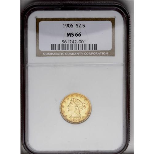 1906 $2 1/2 MS66 NGC. A splendid, century-old Liberty 1906[$2 1/2] MS66 NGC.