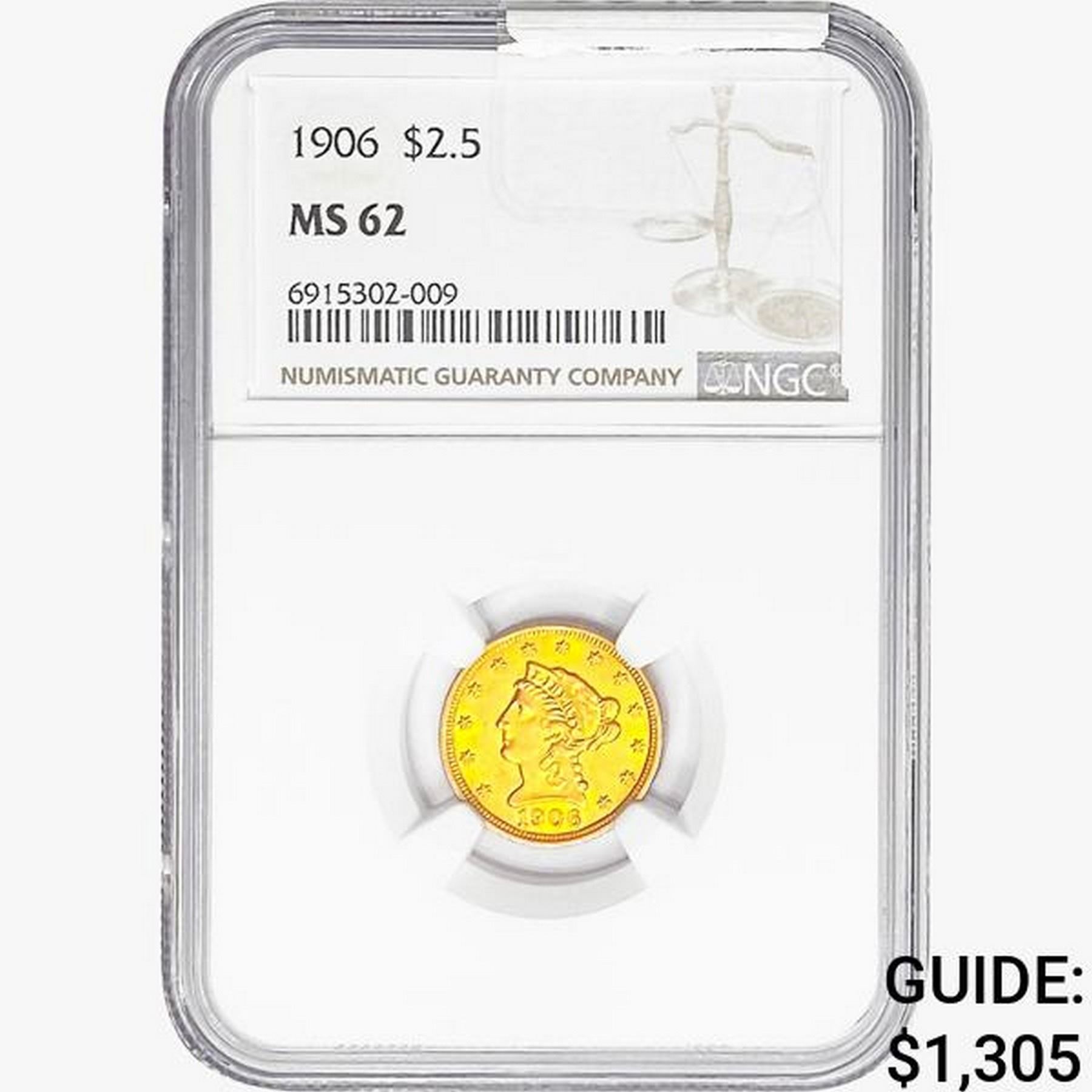 1906 $2.50 Gold Quarter Eagle NGC MS62