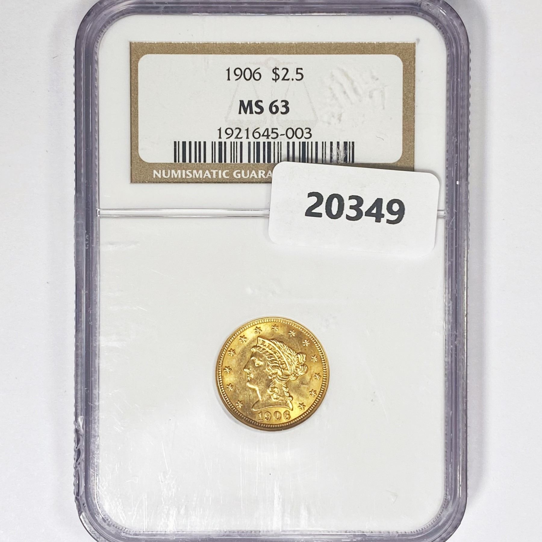 1906 $2.50 Gold Quarter Eagle NGC MS63