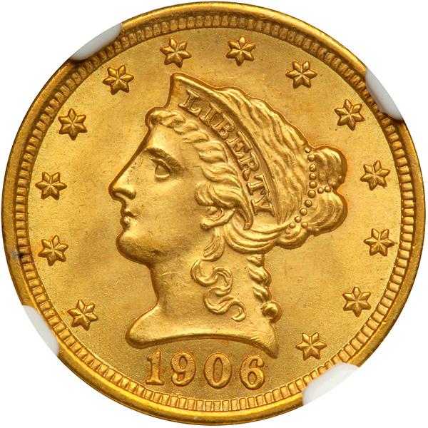 1906 $2.50 Liberty. NGC graded all MS-66. Gorgeous examples of this 1906 date, the fields being matte and lustrous, the designs boldly struck on each and well detailed. Lot of 5 coins (PCGS # 7858) .