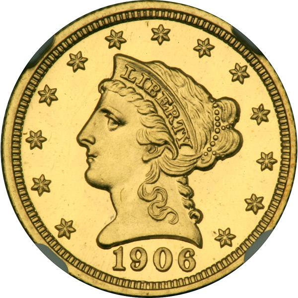 1906. NGC graded Proof 67 Cameo. Star. A glorious Superb Gem Proof glittering with untoned brilliance. The cameo devices are virtually flawless as are the brilliant fields. Only 160 Proofs struck. Absolutely gorgeous mint color and surfaces here. Sleek gold mirror fields reflected the polish from the dies perfection, and maintained with loving care ever since, 115 years to be precise! The devices too, are well frosted by the dies, including the stars and date as well as the lettering, enough so to earn the valued "cameo" designation from NGC. Of course the strike has to be perfect, with no weak areas whatsoever since Proofs were struck on the Mint’s hydraulic press (not the usual electrically operated one used for everyday strikes). Proof mintage for the year was on a par with other dates after the turn of the 20th century, but not too many considering a few may have been spent or lost over the years, or otherwise mishandled. No one knows for certain but many things were chipping away at the number available for collectors. Here is a high end gem for the specialist. Pop 4; 3 in PF-68 (PCGS # 87932) .
