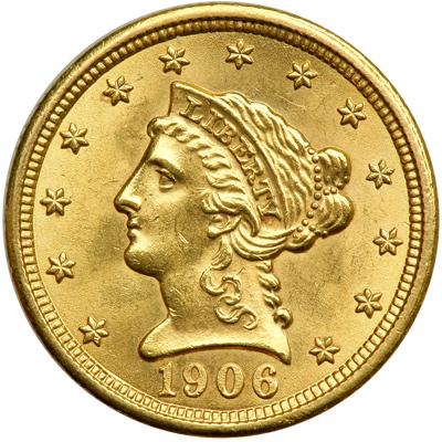 1906 $2.50 Liberty. Altered Surfaces. Our grade is MS60+ (PCGS # 7858) .