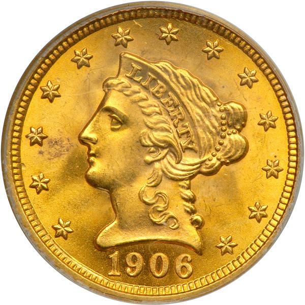1906 $2.50 Liberty. PCGS graded all MS-66. One coin is housed in an Old Green Holder. Lot of 3 coins (PCGS # 7858) .