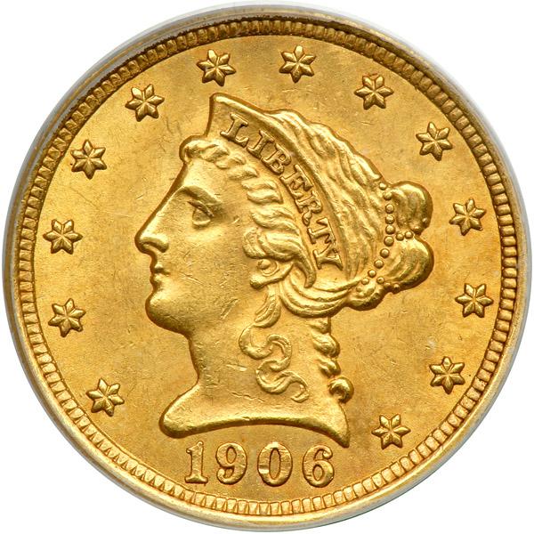 1906 $2.50 Liberty. PCGS graded MS-62. CAC Approved. Light golden toning, lustrous (PCGS # 7858) .