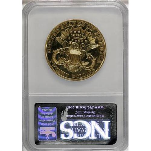 <B>1906 $20 --Altered Surface--NCS. Proof.</B></I> The field reflectivity may have been enhanced, but a strong loupe fails to reveal any indication of metal movement or an applied finish. Liberty's cheek and neck have a few faint slide marks, and a solitary reed mark is present beneath the bust tip. This precisely struck specimen is void of wear and has a few splashes of peach toning.<BR><BR><B>Coin Engraver:</B> James B. Longacre<BR><BR><b>Shipping:</b> Coins & Currency (<a target="_blank" href="http://www.heritageauctions.com/common/shipping.php">view shipping information</a>)