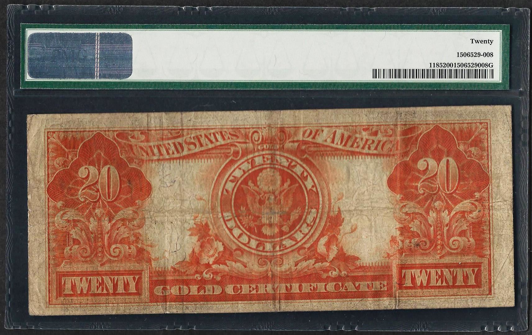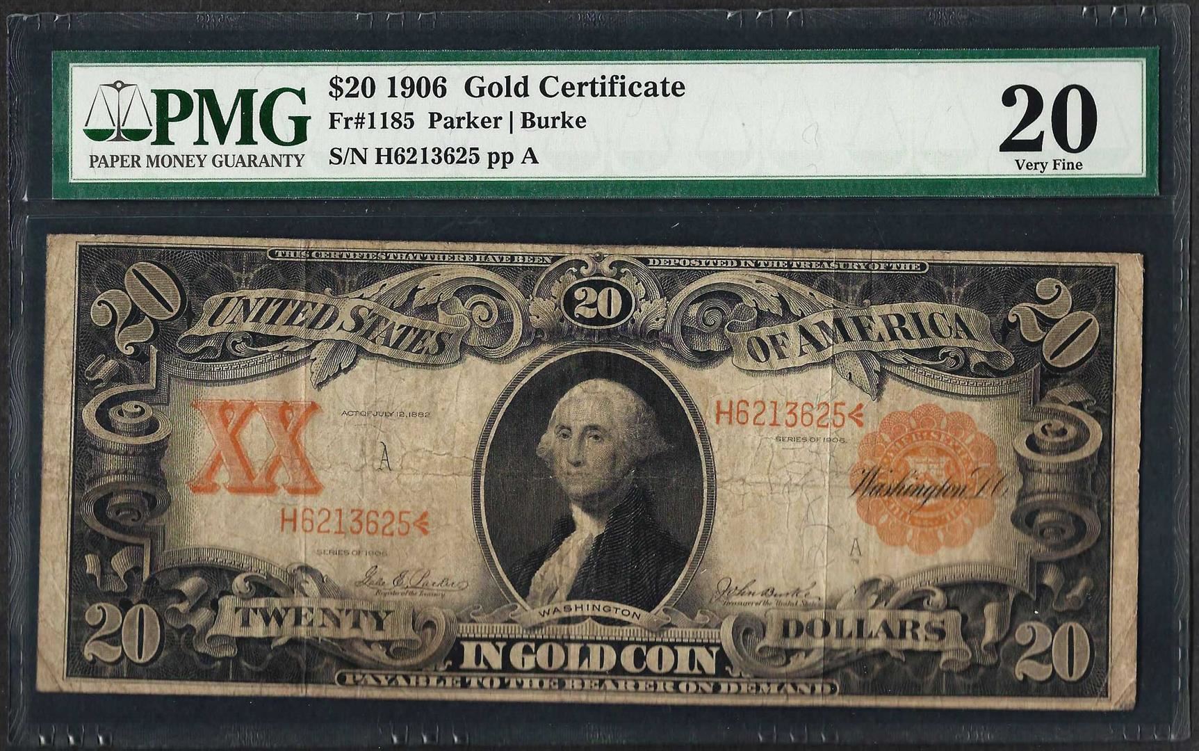 One 1906 $20 Gold Certificate Note Fr.1185 PMG Very Fine 20. PMG Certified.