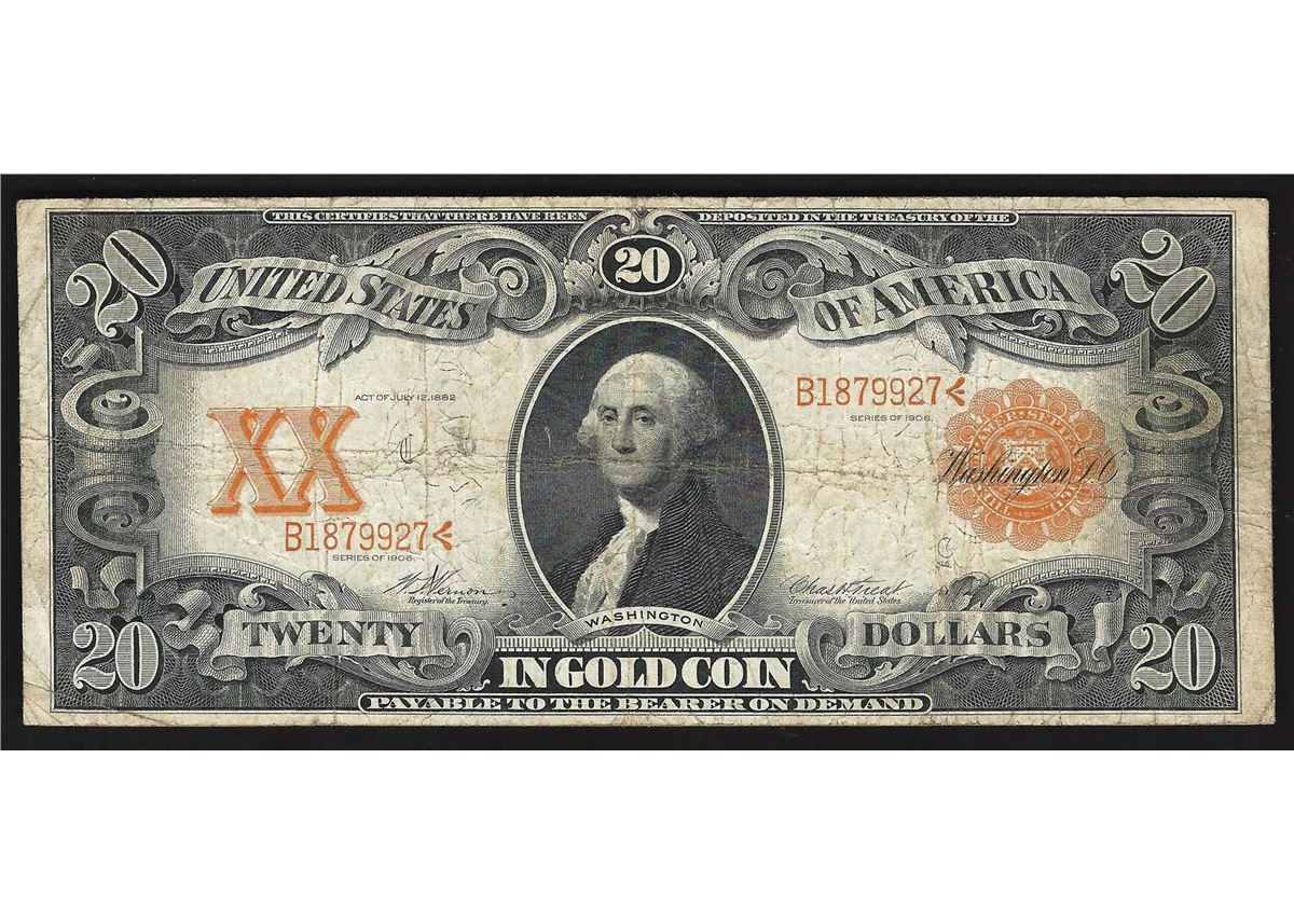 One 1906 $20 Gold Certificate Note.